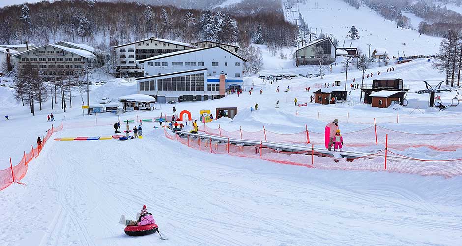 For families that don’t mind being a bit away from it all (and particularly if you do have younger kids), staying in the Okushigakogen Resort would be really easy – there are two main hotels and they’re right at the base where there’s a good ski school, children’s play area, ski rentals and café (great if parents need to take it in turns to ski/babysit). Although it takes a little longer to access the rest of the ski areas, parents will be able to have a good variety of skiing not far away (particularly when they open up the trees). Hotel Grand Phenix has a swimming pool which may help eat up some time in the evenings, and both hotels in the area have nice lounge areas for hanging out in, or for gathering with other families.