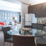 All of the rooms, even the most basic ‘Deluxe Studio’ rooms have balconies, fireplaces and kitchenettes that include a two-burner stovetop. It won’t be hard to make a basic meal here, which means you get even better value for your money. And except for the double queen rooms, all suites and studios have pullout sofas in their living areas, providing an extra bed for kids. The decor throughout is funky and bright (somewhat modern and chic) which is a wonderful change from the typical ski resort hotel room. There are no connecting rooms, but the hotel can organise them to be adjacent from one another.